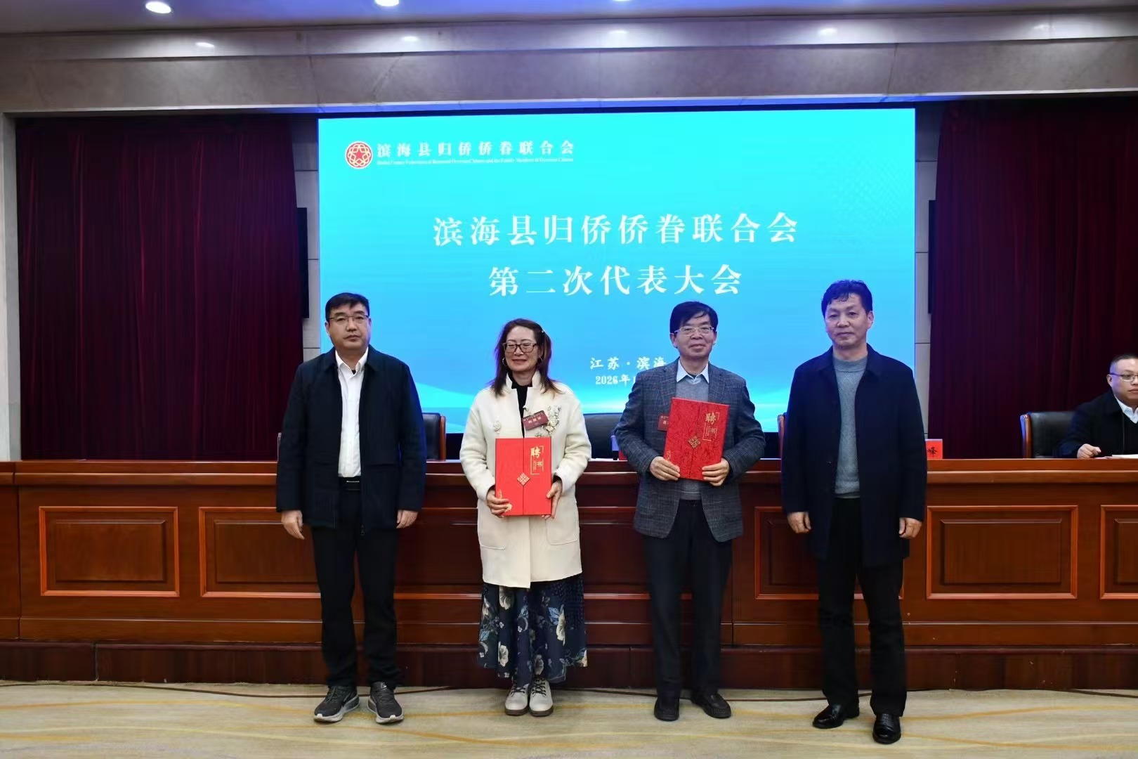 2026年1月9日上午,江苏滨海侨联第二次代表大会召开,选举产生新一届领导班子,李勇杰当选主席,吉尔多肽董事长徐红岩任名誉主席。市县相关领导出席,会议由统战部常务副部长朱政全主持。