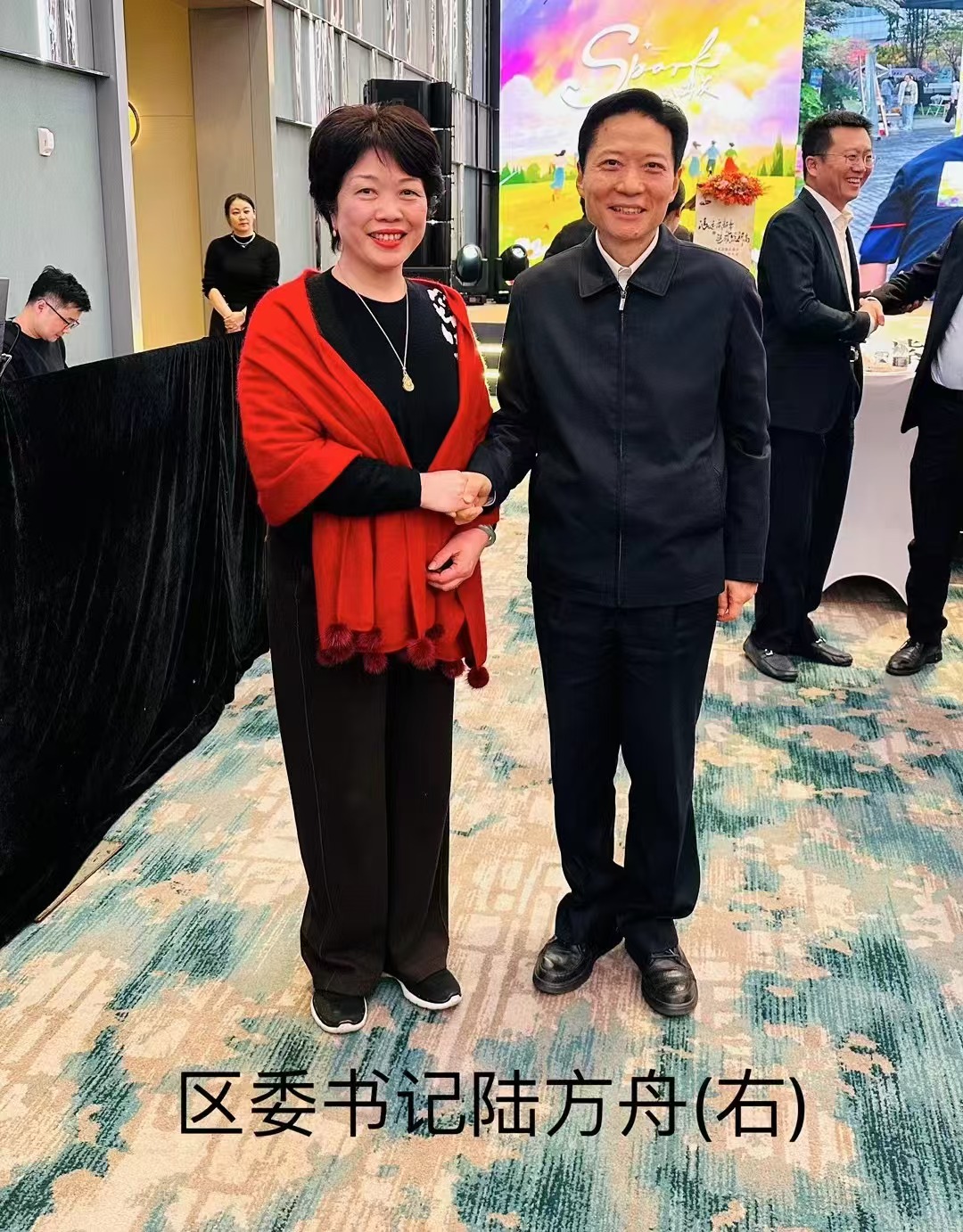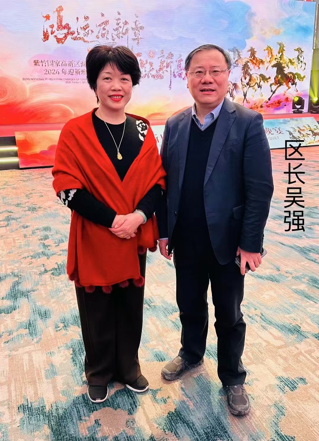 The Chamber of Commerce of Zizhu National High-Tech Park held a New Year Celebration at the Courtyard by Marriott Hotel on January 23, 2026. District leaders including Mr. Lu Fangzhou, Secretary of the CPC Minhang District Committee of Shanghai, and Mr. Wu Qiang, Deputy Secretary of the District Committee and District Chief, attended the event. Representatives from various enterprises were present, such as Mr. Shen Wen, Chairman of Zijiang Group, Mr. Xia Guang, General Manager of Zijiang Group, and Ms. Zhou Min, General Manager of GL Biochem.(The picture shows Ms. Zhou Min, General Manager, taking a group photo with Mr.Lu Fangzhou, and Mr. Wu Qiang)